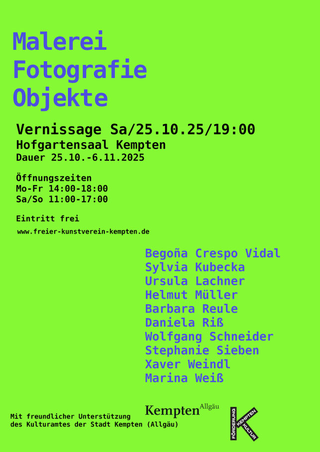 • "Werkschau", Kunsthalle Kempten, 2018 Vernissage Malerei, Fotografie, Objekte